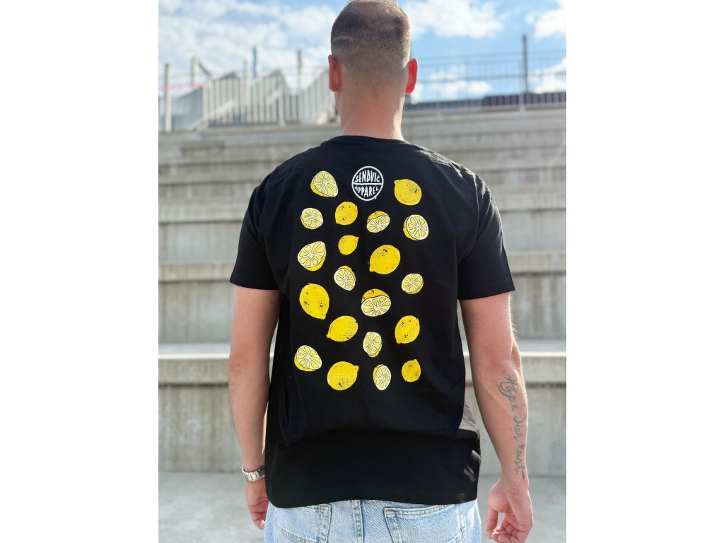Osvěž svůj streetwear letním twistem! Na zádech se ti rozlétají šťavnaté citrony, plátky i kapky – přesně jako domácí limonáda v parném dni. Čistý, výrazný design, co tě osvěží i bez brčka.